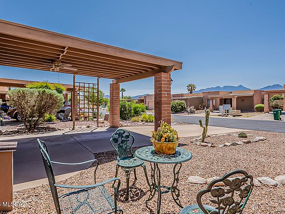 Charming, move-in ready 2BD/2BA townhome in sought-after Desert Hills 4. Fully furnished and steps from the Elks Lodge, church, and rec center with pool, tennis, fitness, and more. Offers over 1,100 sq ft of living space with skylights, tile in key areas, no popcorn ceilings, and an enclosed AZ room perfect for morning coffee. Guest room with Murphy bed adds flexibility for a home office or craft space. The cozy backyard is ideal for potted plants and relaxing afternoons. Extra-large covered carport provides mountain views and a friendly spot to connect with neighbors. A rare opportunity in one of Green Valley's most vibrant communities--close to shopping, recreation, and the Arizona lifestyle you love.