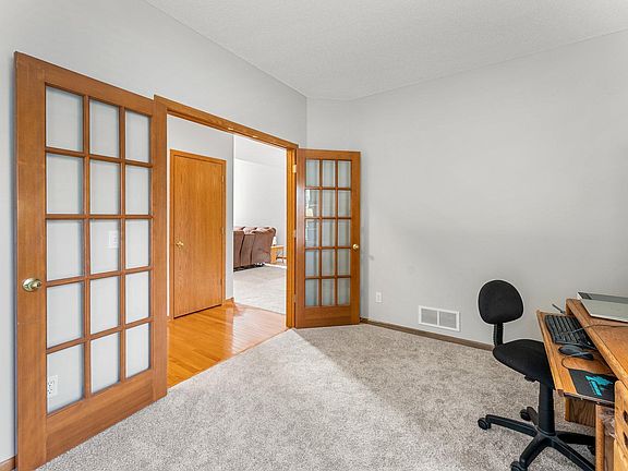 New carpet, appliances, lighting, fresh paint throughout, in-wall/ceiling speakers, and pre-inspected! Do we have your attention yet? Located in Orchard Pointe, you’ll love the convenient location and trails that surround the neighborhood. Relax in the owner’s suite with vaulted ceiling, two closets (one walk-in), and private bath with dual sinks, jetted tub, and separate shower. Upstairs also includes 2nd bedroom, full hall bath, laundry room, additional storage, and a loft (potential future 4th bedroom) that overlooks the living room below. It’s so open and bright! Enjoy the gas fireplace in the living room surrounded by a soaring wall of windows. On the main level you’ll also find the kitchen with hardwood floors, newer stainless-steel appliances (two of which are brand new - gas range and refrigerator), and pantry. The deck (with no neighbors immediately behind you), private office with French doors, informal dining room, 1/2 bath, and two closets complete the main level. Head downstairs to find a spacious family room, bedroom 3 with large walk-in closet, another full bath, and plenty of additional storage in the mechanical room. Added perks: In-ground neighborhood pool, newer furnace, garage door and garage door opener, and ISD 196 schools. Your suburban sanctuary, brimming with charm and convenience, eagerly awaits your arrival! Don’t miss the 3D tour + floor plan.
