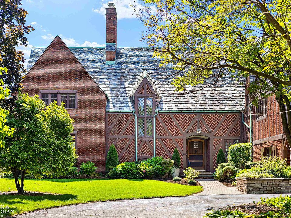 Stunning Tudor waterfront estate with incredible views of Lake St. Clair. Designed by D. Allen Wright, a Detroit-based architect for select homes throughout Grosse Pointe in the 20's and 30's. The current (and only second) owners have lovingly cared for this home for 50+years. Enjoy gorgeous lake vistas from gracious foyer, spacious living room, paneled library, wood-beamed and Pewabic-tiled dining room, and four upstairs bedrooms. Hall and staircase have wood beams that soar two stories. Apartment over garage has three bedrooms, full bath, an elevator, sitting area, sink/cabinets-perfect for in-law suite or home office. Original woodwork, doors and light fixtures, and Pewabic-tiled bathrooms also convey home's historic character. Home comprises 5400 square feet on two floors plus a walk-up attic, full basement, 4 fireplaces, slate roof and 3 car attached garage. Kitchen is a blank slate awaiting the new owner's vision and choices. Important updates, completed the last three years: new 4' seawall with 12' cement walkway, 400 amp service to house, new commercial boiler with new piping & controls, new condensate pipes, asbestos abatement, entire interior professionally painted, hardwood floors refinished, central vac, copper gutters repaired and cleaned. The city park is situated next door for family fun during the summer as well as year-round amenities like a fitness center and a movie theatre showing current titles. Rare opportunity to live on Lake St. Clair in the coveted Windmill Pointe neighborhood.