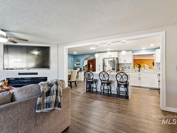 Stunning Caldwell Home on 0.40 Acres—Minutes from Lake Lowell! This beautifully updated 3-bed, 2-bath home blends modern finishes with spacious living. The remodeled kitchen features waterfall quartz countertops, a large island, stylish backsplash, stainless steel appliances, brand new dishwasher and custom cabinetry—perfect for cooking and entertaining. The open floor plan flows into the great room with a bar and pass-through window, ideal for gatherings. The primary suite offers backyard access, dual vanities, an updated shower, and a relaxing jacuzzi. Enjoy the versatile bonus room with wood-accented walls, a bar, and cozy fireplace. Outside, relax under the covered gazebo, around the fire pit, or on the private patio. Alley access allows RV parking, boat storage, or room for a shop. Fresh exterior paint, fenced yard, mature landscaping, and storage shed complete this move-in-ready gem!