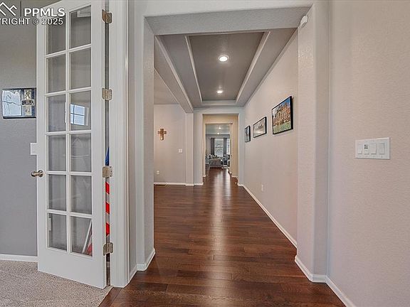 Welcome home to this thoughtfully upgraded Parker Homestead beauty where space, style, and function come together effortlessly. The expansive family room, filled with natural light and anchored by a 2024 fireplace surround with solid walnut mantle, flows into a stunning kitchen with slab granite, solid hickory hardwood floors, a Delta Touch faucet, walk- in pantry, and a butler’s pantry connecting to the elegant formal dining room. The main level also includes a private office with French doors, formal dining space, powder bath, and a mudroom off the oversized 4-car garage. Upstairs, you’ll find a luxurious primary suite with a spa-inspired bath featuring dual vanities, soaking tub, tiled shower, and smart ceiling fan. Three additional bedrooms include a Jack-and-Jill setup and a third full bath. A spacious loft-style family room and laundry room complete the upper level. The full unfinished basement offers endless potential, while outside you'll love morning coffee under the patio sunshade or relaxing in the 8-person Marquis hot tub. Raised garden beds, secure window well covers, and a huge garage with built-in shelving and cabinets add daily convenience. Recent upgrades include: Solid hickory hardwood floors (8 yrs) A/C (9 yrs) R60 attic insulation, attic fan, exterior paint, LED coach lights (2024) Nest thermostats, Nest smoke/CO detectors, WiFi sprinkler controller Garage door opener w/ battery backup (2023) Leased solar panels, glass storm door Enjoy unbeatable access to EchoPark Stadium, Double Angel Fields, Rueter-Hess Reservoir & Incline, all while enjoying the charm of a peaceful neighborhood. Come see why this one stands out!