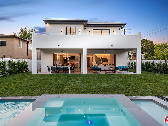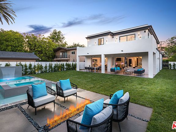 Exquisitely designed modern smart home in the heart of Sherman Oaks. This one-of-a-kind entertainer's dream home has been outfitted with luxury finishes throughout. One of the first ever voice controlled smart home system allows you to command every function. The custom kitchen is complete w/high-end appliances, over-sized island, & walk-in pantry. The living & dining rooms are accented by color-changing LEDs & pocket doors leading outside, providing that perfect indoor/outdoor living. The master wing upstairs has a large balcony w/views, perfect for relaxation, custom walk-in closet, & a spa-like master bath. Fenced backyard is complete with a whopping 400sqft covered patio for entertaining, custom fire pit, modern pool, & plenty of yard space for all your needs. Add'l features include dual-zone smart HVAC, EV-ready in garage, custom floor-to-ceiling wine display, glass staircase, smart security throughout, whole-home speakers, & perfect access to freeways, city, & valley