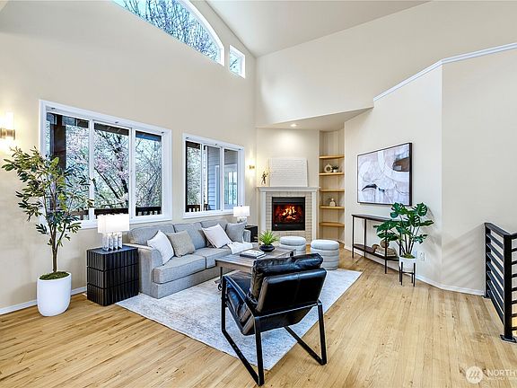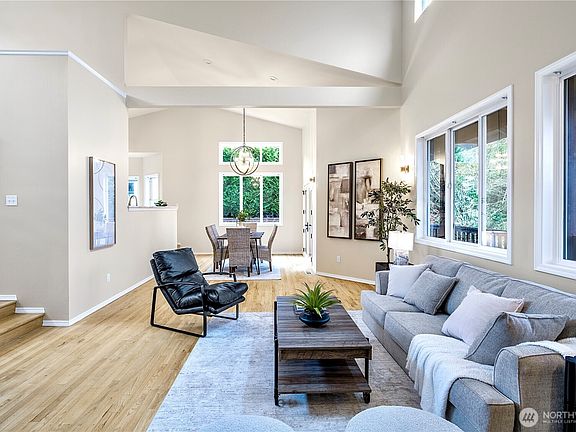 Welcome to this stunning home in the sought-after Bridlewood community. Featuring a bright, sunlit kitchen with quartz countertops and stainless steel appliances, this home is perfect for both everyday living and entertaining. Enjoy the spacious wraparound deck surrounded by lush greenery—ideal for relaxing, grilling, or reading. The open floor plan offers vaulted ceilings, hardwood floors, and large windows that fill the space with natural light. The main-floor primary suite includes an updated spa-like bath and a private office, ideal for remote work. Located in a peaceful setting near I-405, Totem Lake, Burke-Gilman Trail, and Downtown Kirkland. Top-rated Northshore schools complete this exceptional offering.