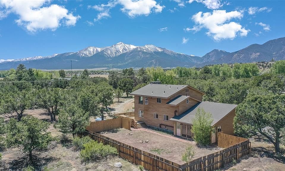 Amazing views of Mt. Princeton and the Collegiate Peaks from the south facing deck of this 3 bedroom 2.5 bath single family home sitting on 2 acres and close to town. Attached 2 car garage and separate storage shed gives you lots of storage. Fenced back yard for your furry friends. Nestled in the Piones Trees giving you the sense of privacy while the mule deer regularly pass through your yard. Clean and move in ready and priced right for you to add your personal touch with a few updates.