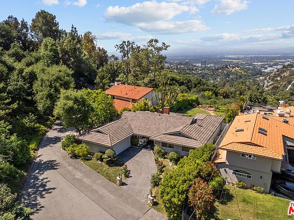 Located on a private quiet cul-de-sac off the famed Mulholland Drive, the single-story family home offers a prime opportunity to reimagine or develop on a spacious lot, with sweeping city, mountain, and valley views. The current floor plan offers great versatility and potential, with large public rooms that include a formal living room anchored by a charming stone fireplace and sliding glass doors that perfectly frame the sprawling backyard and shimmering valley vistas beyond. The four bedrooms include a spacious primary suite that features walls of windows for an abundance of natural light, ample closets, and a large ensuite bathroom. Large guest bedrooms provide the perfect space for children or visitors, with a flexible and private fourth bedroom located on the opposite side of the home. The backyard offers a fantastic opportunity for landscape enthusiasts, with a large flat lawn area and meandering paths that lead to a deck with panoramic views of the city below. This charming mid-century home with fantastic bones offers limitless potential to remodel, develop, and reimagine. Make the most of this world-class location high above the hustle and bustle of city, with easy access to major freeways and some of the most sought-after dining, leisure and entertainment options Los Angeles has to offer. Additionally, the home falls within the highly coveted Roscomare Road School District.