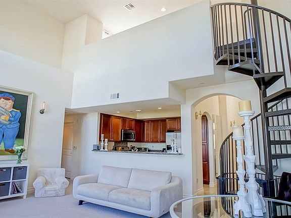 Gorgeous Executive Top floor Tuscan style Condo in the Valley's most desirable location at the Villa Trevi complex in Sherman Oaks. As you enter this light and bright unit with cathedral ceilings you will appreciate the top floor views of the mountains and city. Off the living area are two balconies to enjoy your morning coffee, a spiral staircase leads to a roomy loft and sliding doors to a private roof top deck, ideal for al fresco dining with friends while enjoying the views. The Kitchen has upgraded cherry cabinets, granite counter tops and stainless steel appliances. The master bedroom has an ample walk in closet and a en suite tranquil spa feel master bath with separate soaking tub and shower. Common area includes 2 courtyards with fountains, BBQ area with patio furniture, and a roof top sun deck with chaise lounge chairs. Security building with 24 hour video surveillance, private security system in unit, 2 assigned subterranean parking spaces. Low HOA dues $282 month.
