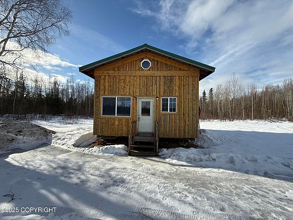 Charming Cabin with Loft on Over 10 AcresPerfect for Outdoor Enthusiasts and Business Ventures. Nestled on over 10 acres of beautiful Alaskan wilderness, this could-be charming cabin offers a unique opportunity for those seeking a serene retreat or an entrepreneurial business venture. With direct frontage on the Parks Highway and access to a myriad of trails, the Kashwitna Riverand the Su River, this property is a gem waiting to be discovered.  Property Overview: This property features a cozy one-bedroom cabin with an additional loft bedroom (200 sq ft included in sq ft), providing ample space for relaxation or work. The cabin is complemented by a half bath that has room to be upgraded with a tub or shower, enhancing its comfort and convenience, well and septic are brought into the bathroom only. Could be moved to the back portion of the property for more privacy or use in its current location. Dog sled teams welcome. Utilities: On grid Electric! The cabin is connected to a septic system and a well in the bathroom only, offering reliable waste management and water supply. Partially completed connections mean you have the opportunity to customize and finalize the utilities to suit your needs. Land and Location: The expansive 10-acre lot is partially cleared and graveled, providing a perfect blend of open space and natural beauty. The Parks Highway frontage ensures easy access, while the surrounding trails and rivers make this property ideal for dog teams, outdoor activities, and exploring nature. Additional Features: Wood posts for foundation:  Offering a sturdy base for the cabin, ready to be completed to your specifications. Conex included: Providing additional storage space for all your outdoor gear and supplies. Furniture included: Some furniture items are included, enabling you to move in and start enjoying your new property right away. Potential and Possibilities: Whether you're looking to establish a business venture, create a secluded getaway, or set up a base for dog teams and outdoor adventures, this property offers limitless potential. The proximity to trails and rivers is perfect for recreational activities, making it a haven for nature lovers and adventure seekers. Conclusion: This cabin and its expansive property offer a rare opportunity to own a piece of Alaskan paradise. With some completion work, this could be your dream cabin and home, a thriving business, or an adventurous retreat. Don't miss out on this exceptional property - your Alaskan adventure awaits! Call for your showing appointment today!