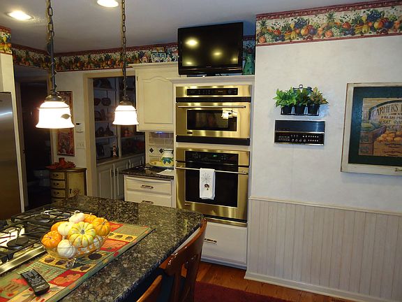 Very well maintained 4 bed, 5 bath, 3 car, 1 1/2 story. Two fireplaces, vaulted ceiling, kitchen and baths with granite countertops & tile backsplash. Newer stainless steel appliances, 6 burner gas stove, newer garage door, gutters, furnace and air. Newer wood & travertine floors, water softener, newer carpet in basement, newer paint on 2nd floor & basement. Large wood deck overlooking in ground pool, gazebo, rollout awning on deck.