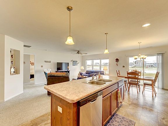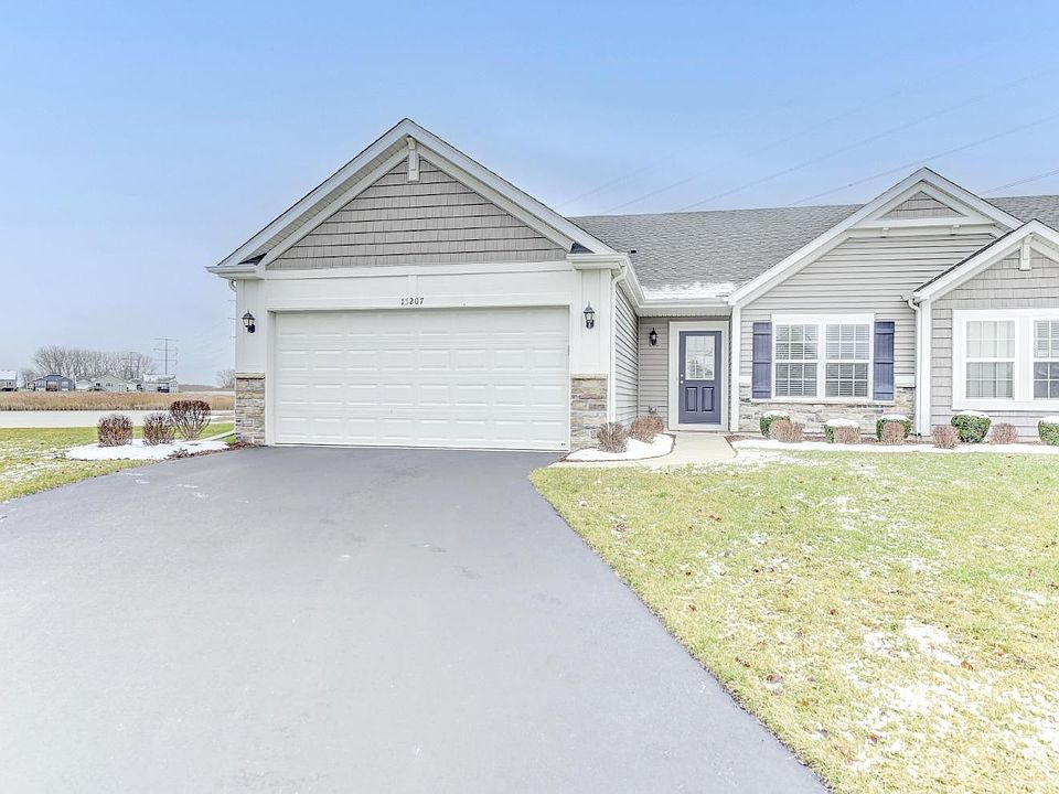 Check out this LIKE NEW pond view MAINTANENCE FREE paired villa in sought after Emerald Crossing. This RANCH townhome features 2 beds 2 Baths + Den & offers open concept living with kitchen featuring huge island with breakfast bar, oak cabinets, laminate counters & stainless appliances. Living room with carpet & tons of natural light & patio slider off dining area that overlooks serene pond view. Main bedroom offers great views, huge walk in closet & walk in shower in En suite. Second bedroom with spacious closet right across the hall from the full bath with tub/shower combo. Den/Office offers a great work or living space depending on needs. Lawn care & snow removal included in HOA dues, leave the mower & shovel behind! Close to shopping, schools, restaurants, Hwy 394 & IL State Line & more.