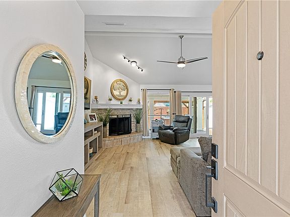 This listing presents a truly turnkey home! You'll find beautifully updated interior featuring; water-resistant, and scratch proof PERGO flooring, complemented by new baseboards and modern light fixtures and comes fully furnished! The kitchen has custom cabinets, Quartz counter-tops, and a suite of new Whirlpool Gold appliances, refrigerator included. Both bathrooms have been fully remodeled with new showers featuring glass sliding doors, updated plumbing, new sink basins, commodes and much more. The attention to detail extends to critical home systems and the outdoor living space. The interior and exterior HVAC unit is only a year old with brand new duct system as well as a new water heater installed in 2025. Moving beyond the core updates, this home offers exceptional convenience and comfort. The backyard and patio furnishing are designed for ultimate relaxation and entertainment. The TV over the hot tub, string lighting throughout, and under-patio recessed lighting, create a welcoming ambiance. It features a no-maintenance TREX Decking, a 6 person Jacuzzi Hot Tub under the gazebo, and the large storage shed conveys with the sale. The yard also includes a 5' x 10' grass area for dogs and a concrete side of the house for convenient boat/jet ski or other storage. You don't want to miss this opportunity! Call your preferred realtor for a showing today!