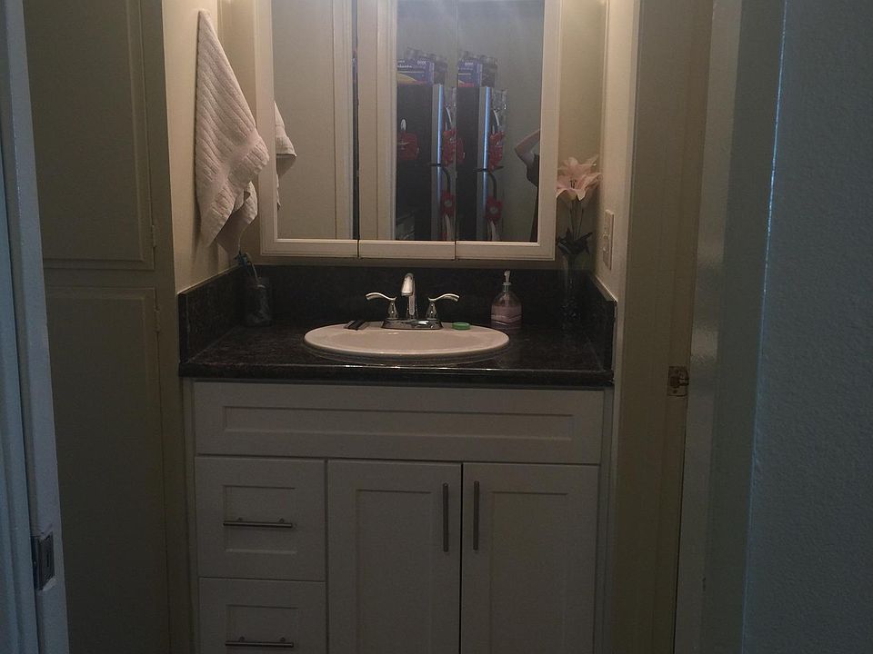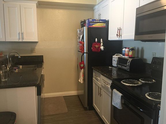 1 bed, 1 bath that was renovated 1 year ago with a very spacious bedroom. Coin-op laundry. Gated community. Close to Shopping centers, freeways. This unit is located in Regency arms. 1 cat is okay with pet deposit of $300. Beautifully maintained pool and area by on site property manager. Quiet and safe community. Unit has AC and heater in bedroom, bathroom and living room. Oven and stove runs off electricity, no gas, so you only have to pay an electric bill. There is 1 assigned covered parking stall with room for storage. This is UNFURNISHED and will be ready to move in April 1st. 1