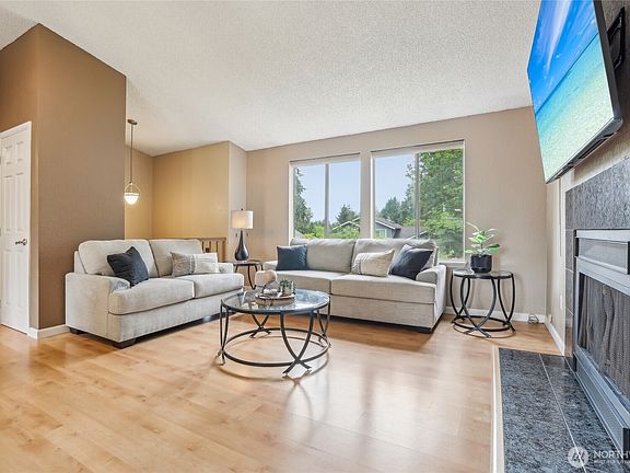 Updated, efficient, & move-in ready! This well-maintained home features a bright, open layout with new flooring, ductless AC, and a stylish kitchen with island seating & new appliances. The finished walkout basement includes a Murphy bed—ideal for guests, office, or flex space. The spacious primary suite offers a heated tile floor, 7-ft walk-in shower with solar tubes, & custom walk-in closet. Recent updates: new roof and gutters (2021), water heater (2024), generator-ready setup, and upgraded garage with mounted storage and updated garage door. Enjoy outdoor living in a fully fenced backyard, patio, and shed. Conveniently located near the Cedar River, parks, trails, shopping, & commuter routes—plus highly regarded Kent School District.