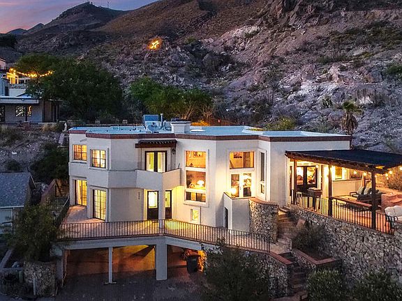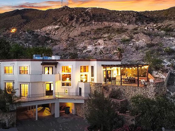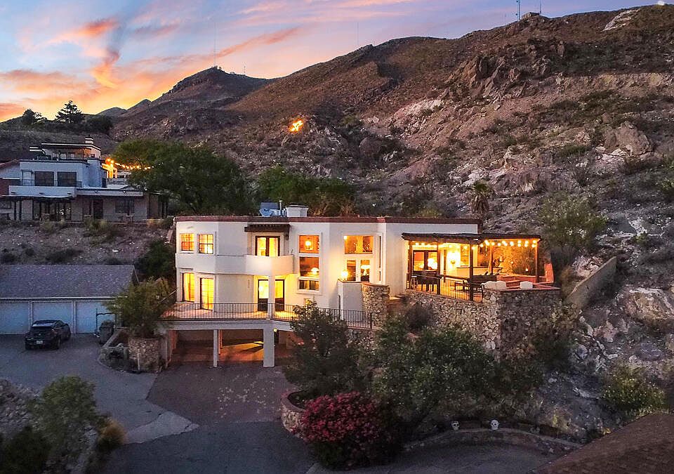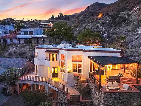 This SPECIAL PROPERTY nestles into the mountainside, offering REMARKABLE VIEWS of downtown & AMAZING DETAILS throughout. From the moment you enter you'll find extensive use of NATURAL WOODS in CUSTOM MILLWORK & EXPOSED CEILINGS, along with unique integration of the area's NATURAL ROCK FORMATIONS. Various levels encompass the living spaces, with a WET BAR & FIREPLACE bringing a welcoming vibe to the main lounge. French doors open from here to a large PERGOLAED DECK, high up in the treetops. An unusual ROCK-FACED BUFFET graces the dining room with a FABULOUS KITCHEN nearby. The ISLAND BREAKFAST BAR is complemented by SS APPLIANCES, handsome WOOD CABINETS, & adorned with charming TILE BACKSPLASHES. 4 bedrooms & 2.75 baths include a HUGE PRIMARY SUITE with a SECOND FIREPLACE, sitting area, great en suite bath with oversized rainshower, & a sweet private balcony. NUMEROUS PATIOS & seating areas wrap all around the exterior, making outdoor living & entertaining a breeze. Truly a ONE-OF-A-KIND HOME, just for you
