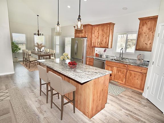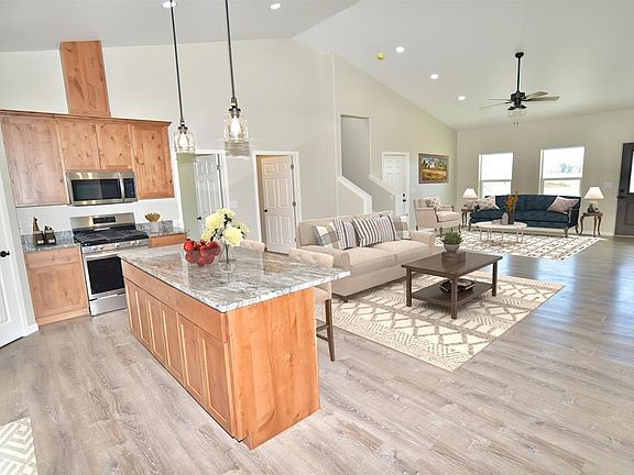 This stunning home offers incredible value in a fantastic neighborhood! A brand-new build featuring 3 bedrooms plus a versatile bonus room that can serve as a 4th bedroom. The open-concept design provides plenty of space to relax, complemented by soaring ceilings that add a touch of grandeur, along with an electric fireplace surrounded by stone with a wood plank mantle. The custom kitchen is a chef’s dream, showcasing granite countertops, elegant cabinetry, and stainless steel appliances. A separate dining nook overlooks the spacious, private backyard—perfect for entertaining or unwinding. Stylish lighting fixtures enhance the luxurious greige walls with crisp white trim. The thoughtfully designed split floor plan ensures privacy for guests and the primary suite. Nestled at the back of the home, the expansive primary suite boasts a tray ceiling and a spa-like ensuite with a custom-tiled shower and double sinks. A 3-car garage provides additional backyard access. Enjoy the comfort of central AC during summer, and take advantage of the HOA benefits, which include irrigation water and a community park. Don’t miss out—schedule your showing today! (Some of the photos have been virtually staged.)