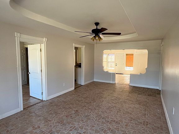 Freshly painted interior and exterior two bedrooms, one bathroom, combine living room, dining room, kitchen, large family room, laundry room with hook ups that comes with a refrigerator on the stove. It has a Mini Split that covers most of the house. The bedrooms have AC unit units. The house has ceiling fans throughout.