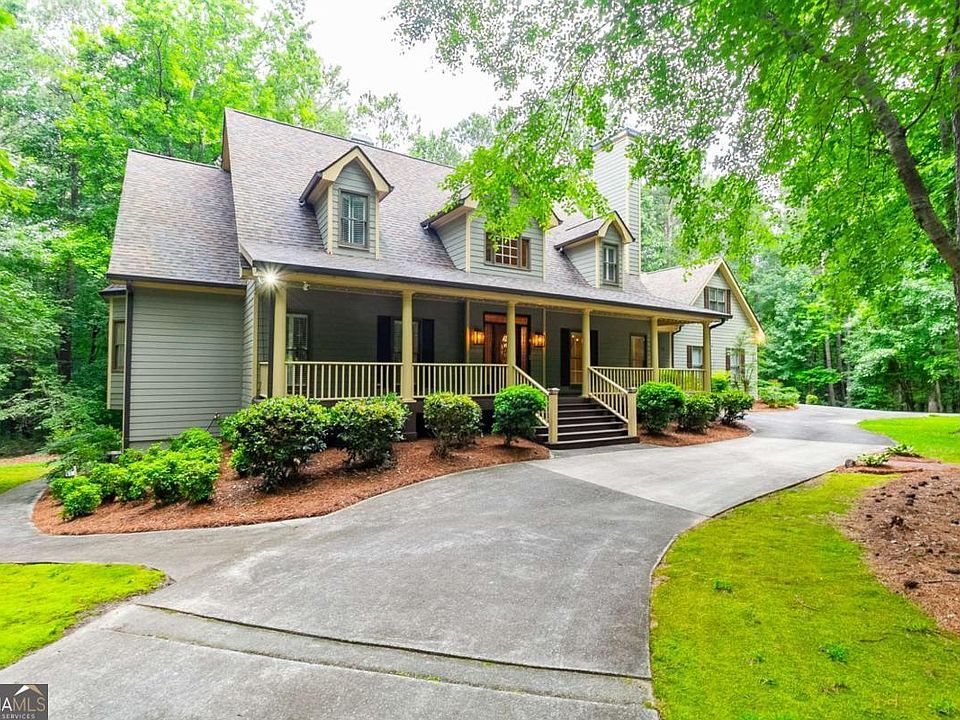 Uncover Grayson's hidden gem with this exquisite Cape Cod home nestled on over 6 secluded wooded acres. This property features 4 bedrooms and 5.5 bathrooms, offering both privacy and luxury. A long private driveway leads to the expansive residence, which includes hardwood floors and a spacious primary bedroom with a bay window, a luxurious bath, and a custom walk-in closet. The kitchen is equipped with stainless steel appliances, granite countertops, and a large pantry, and it overlooks the dining room and a sunken living room with a vaulted ceiling and fireplace. The second floor houses two additional bedrooms with en-suite bathrooms, a library, and a generous bonus room above the garage. The partially finished basement includes a recreation/family room, a second full kitchen, a bar, a workshop, another full bathroom, and a dog grooming room. Outdoor living spaces are equally impressive, featuring two front porches, a multi-level deck, a lower patio, and a screened-in three-season room. Ample parking is available with a circular driveway and two garage spaces, plus a third in the basement. Experience luxurious living in a serene, private setting with this move-in ready, remarkable property. For this property the seller is willing to offer an interest rate buy down with a great offer. Please reach out to the listing agent to learn how to get your buyers a lower interest rate on this amazing home! Book your private tour today.