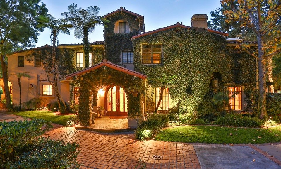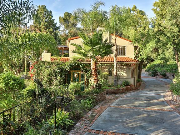 Known affectionately as the Disney estate, this enchanting home was formerly owned by Roy Disney Jr and has has many "Disneyesque" features. There are gorgeous views from the house, the balcony, the expansive patio and the trails. The property consists of 2 parcels that include a gorgeous separate guest with a view of the pool/spa, a catering kitchen, gym, tennis court and a cabana with 2 half baths. The property encompasses approximately 61,000 sq. ft. of grounds that are impeccably manicured with a formal rose garden and private "Zen Garden" with a look out point for amazing views. The "Secret Garden" is below the main portion of the grounds and consists of meandering trails that ultimately lead to a children's paradise with play house, play equipment, a rope climb and archery range. There is a look out bench along one of the paths with lovely views of the sunset. This Mediterranean style villa reflects luxury and elegance at its finest. The main home features 5 bedrooms, 6 baths and 3 fireplaces. The gracious formal entry leads past beautiful arched wood doorways to the living and music rooms. Under the staircase is a powder room designed by Roy Disney. The formal dining room has built-in cabinetry, a spectacular chandelier and entry to the conservatory with majestic view of the city and grounds. The custom built kitchen cabinets display craftsmanship at its fines and features granite counters, a center island with a 2nd sink and 2nd dishwasher. There are top of the line Sub Zero and Wolf appliances. The family room showcases the "Disney" wet bar and has beam ceilings, soffet lighting, a half bath, built-in entertainment center and a fireplace. Entering through the double doors of the master suite, there is a raised fireplace, coffered ceilings and a sitting area and a balcony with views of the city below. The luxurious master bath features his and her walk-in closets and vanities, a spa tub, and large stall shower. The sweeping curved driveway with brick ribbons has delightful nigh lighting and leads to the 3 car garage. This is a must see for those buyers looking for that unique and elegant property with a touch of magic!