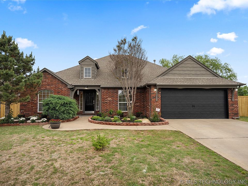 Welcome to this three-bedroom, two-bathroom west-facing beauty nestled in the Stonebridge Park community. The beautiful landscaping welcomes you right away. Step inside to discover an open living, dining and kitchen; adorned with crown molding and laminate flooring throughout. The living room features a fireplace with a built-in above. The kitchen is equipped with white cabinetry, granite countertops, stainless steel pulls, and a convenient pantry. Retreat to the primary bedroom, offering vaulted ceilings and a private door with direct backyard access. The ensuite bathroom features a shower, large jetted tub, double-sink vanity, and a generously sized walk-in closet. For added convenience, the laundry room is located directly across the hall from the primary suite. Enjoy relaxing on the covered patio overlooking the fully fenced backyard. Don't miss the opportunity to make this delightful home yours! Schedule a showing today.