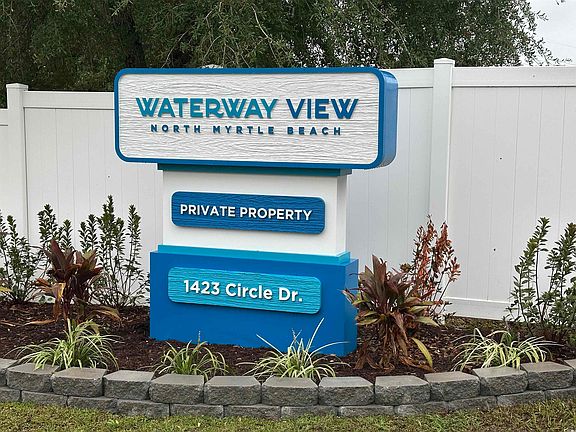 2025 NEW HOME located in the coastal getaway in Waterway View Community! You are steps away from the INTRACOASTAL WATERWAY and a golf cart ride to the BEACH! This North Myrtle Beach location is ideal and allows you to enjoy a day on the beach, restaurants, shopping, and entertainment nearby! This modern 3-bedroom, 2-bath home with recessed lighting throughout blends comfort, style, and a touch of seaside charm—perfect for anyone looking to enjoy a charming getaway at the beach. Spacious DRIVEWAY allows plenty of parking for your GOLF CART and fresh landscaping adds to your curb appeal! Step inside to discover a beautiful open floor plan highlighted by, soft coastal tones, and plenty of natural light. The seamless flow between the open living room, kitchen makes this home ideal for gatherings with friends and family. The updated kitchen has STAINLESS STEEL APPLIANCES including a dishwasher, electric stove with a RANGE HOOD, white cabinetry, and a BREAKFAST BAR for quick meals. The primary suite with new plush carpet, complete with an updated en-suite featuring a modern vanity and oversized WALK IN SHOWER with glass shower doors. The additional 2 bedrooms each have a closet. The 2nd bathroom features a fiberglass shower and bathtub combo along with a single vanity including updated hardware. A dedicated LAUNDRY AREA with cabinet space adds convenience to your daily routine. As part of the Waterway View lifestyle, you’ll enjoy community amenities and quick access to the Intracoastal Waterway, plus you’re just a short golf cart ride to all the dining, shopping, entertainment, and sandy beaches North Myrtle Beach is known for. COMING SOON-Community POOL, picnic BBQ area and clubhouse! This brand new home truly offers the perfect blend of convenience and coastal charm—don’t miss your chance to make it yours! LEASED LAND Some photos have been virtually staged.