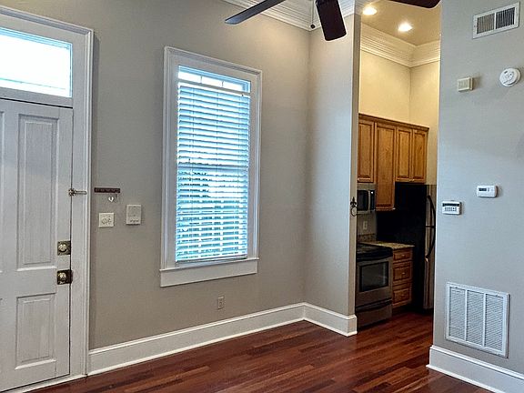 One bedroom apartment located steps from St. Charles Avenue in the historic Lower Garden District. Fully equipped kitchen with stainless steel appliances including refrigerator, dishwasher, oven, microwave. Granite countertops, custom cabinets. 12 foot ceilings with crown molding and ceiling fans. Hardwood flooring throughout unit. Central air and heat. Laundry.