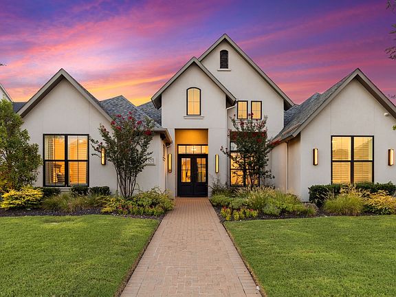 Luxury, comfort, and function come together in this Stunning Single-level custom home offering 5 bedrooms, a study, game room, media room, and two oversized 2-car garages. From the moment you enter, soaring ceilings, rich wood floors, and expansive windows fill the home with natural light and set a tone of refined elegance. The heart of the home is the showpiece kitchen featuring a dramatic waterfall quartz island, professional-grade appliances, an oversized wine chiller, glass-front cabinetry for displaying your finest pieces, and a huge walk-in pantry. The open layout flows seamlessly to spacious living and dining areas, creating an ideal space for entertaining or relaxing with family. The owner’s suite is a private retreat with a spa-inspired bathroom boasting a walk-thru shower, stand-alone soaking tub, and two large walk-in closets. Secondary bedrooms with ensuite baths, are generously sized, offering comfort for family or guests. Step outside to your own private resort. A gorgeous pool and spa with water features, dramatic fire bowls, and a state-of-the-art water chiller ensure perfect swimming temperatures year-round. Enjoy evenings by the fire pit or gather under the expansive covered patio with its own fireplace and built-in grill. Every detail of this home was designed for both beauty and function inside and out. Located in a upscale boutique community in the highly sought after Prosper ISD. Close to shopping, dining and minutes from the PGA, this property delivers an unparalleled lifestyle for the discerning buyer.