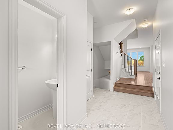 Introducing The Abbey, a stylish and move-in ready townhome offering 1,855 square feet of thoughtfully designed finished living space. The main floor showcases elegant maple hardwood paired with ceramic tile in the entry and wet areas. A modern kitchen highlights white shaker cabinetry, quartz countertops, a walk-in pantry, ceramic tile backsplash, a white under-mount sink, and a sleek matte black faucet. The inviting living room is anchored by a natural gas fireplace, perfect for cozy evenings. Upstairs, the primary suite features a spa-inspired 4-piece ensuite with a freestanding tub, a glass-enclosed tiled shower, and a quartz-topped vanity. Additional highlights include quartz countertops throughout the home, a finished basement with rough-in for a future bathroom, and the peace of mind of ENERGY STAR certification. Conveniently located in Kingstons east-end, this home is just minutes from schools, shopping, express transit, and CFB Kingston.