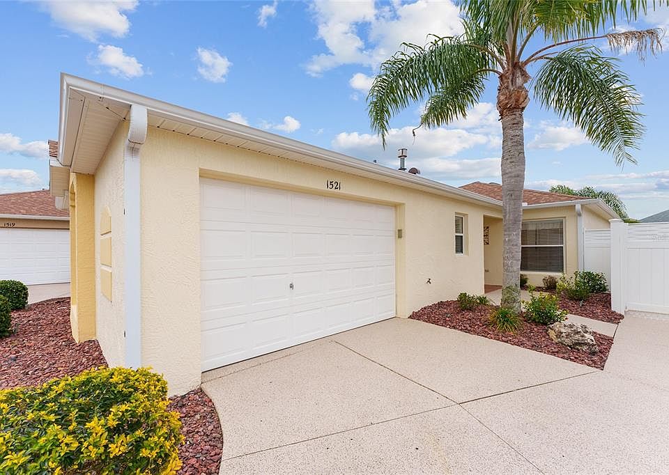 **BOND PAID** Charming 3 BED / 2 BATH “FOXGLOVE” Block/Stucco Courtyard Villa in the Village of Mallory. Partially FURNISHED. Spacious OPEN CONCEPT Kitchen with GRANITE countertops throughout, HUGE island, pecan-stained maple cabinetry with pullouts, Newer SS APPLIANCES (NATURAL GAS ready) and large pantry. BEAUTIFUL High-quality vinyl "woodgrain" plank flooring throughout. NO CARPET! Vaulted ceilings, solar tubes and a south-facing screened lanai with tiled floor. Low-Maintenance “Rockscape” Landscaping –NO GRASS! Painted driveway and front/rear walkways. INSIDE LAUNDRY ROOM with tile flooring. Oversized 1.5-car garage with epoxy-coated floor, insulated garage door and pull-down attic stairs. Enjoy the convenience of central living “BETWEEN THE 6’” with easy access to golf, recreation, shopping, restaurants, entertainment and close proximity to Lake Sumter Landing Square. Don’t miss your chance to make this stunning home yours! ROOF 2021. HVAC 2016. HWH 2016. BOND PAID.