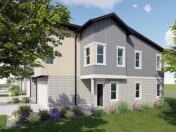 The Valley Canyon Series - 1455 - Res M. Offering rates as low as 3.875% 5/1 ARM (6.037% APR) when financing through Lennar Mortgage! Estimated completion in November. This home offers 3 bedrooms, 2.5 bathrooms, an attached 2-car garage and a full unfinished WALKOUT basement. On the main floor, a spacious kitchen offers stone gray craftsman-style cabinets, white quartz countertops, and stainless steel appliances including the refrigerator! Upstairs is the owner's suite with owner's suite bathroom, laundry area, two additional bedrooms, and a full secondary bathroom. Square footage figures are provided as a courtesy estimate only and were obtained from builder. Buyer is advised to obtain an independent measurement. Interior photos are of same style of home, but not the actual home. Rendering is for illustrative purposes only.