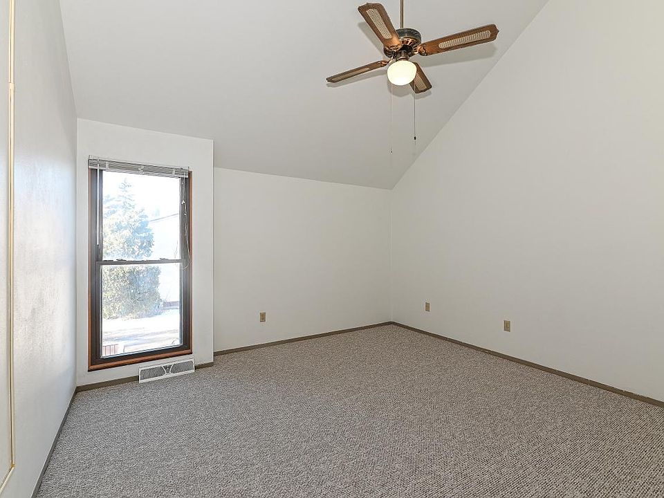 Welcome home to this charming 2-bedroom, 1.5-bath condo/townhouse! The main floor features a convenient half bath, a well-appointed kitchen equipped with arefrigerator, stove, dishwasher, microwave, garbage disposal, and patio doors leading to a private patio. The living room also boasts patio doors that open to the sharedcommon area grounds, creating a seamless connection to outdoor spaces. Upstairs, you'll find two spacious bedrooms with vaulted ceilings and a full bathroom. The unitincludes a full basement, offering a partially finished area perfect for a variety of uses, along with ample storage and a dedicated laundry space. As a plus, a one-year HSAhome warranty is included for peace of mind!