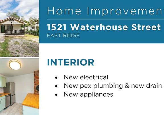 Welcome to 1521 Waterhouse Street, a charming home in a quiet East Ridge neighborhood with wonderful curb appeal. A covered front porch sets the tone for enjoying fresh air and relaxation. Inside, you'll find two bedrooms and one bathroom, along with low-maintenance, beautiful flooring that flows throughout the main living areas. Original details, like the arched doorway leading from the living room to the dining area, give the home character, while exposed brick in the kitchen creates a striking statement at the peninsula bar, which also provides additional seating. The kitchen is thoughtfully designed with butcher block countertops, a large stainless sink, attractive cabinet colors, a subway tile backsplash, and new stainless appliances. The bathroom offers fresh, updated details, while both bedrooms feature clean carpet. The primary bedroom includes a spacious walk-in closet with a built-in system for organization.