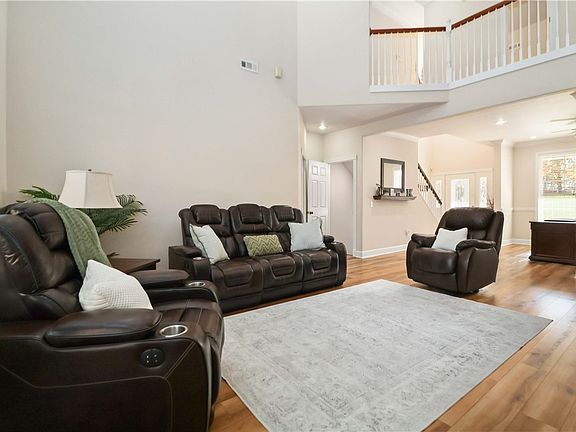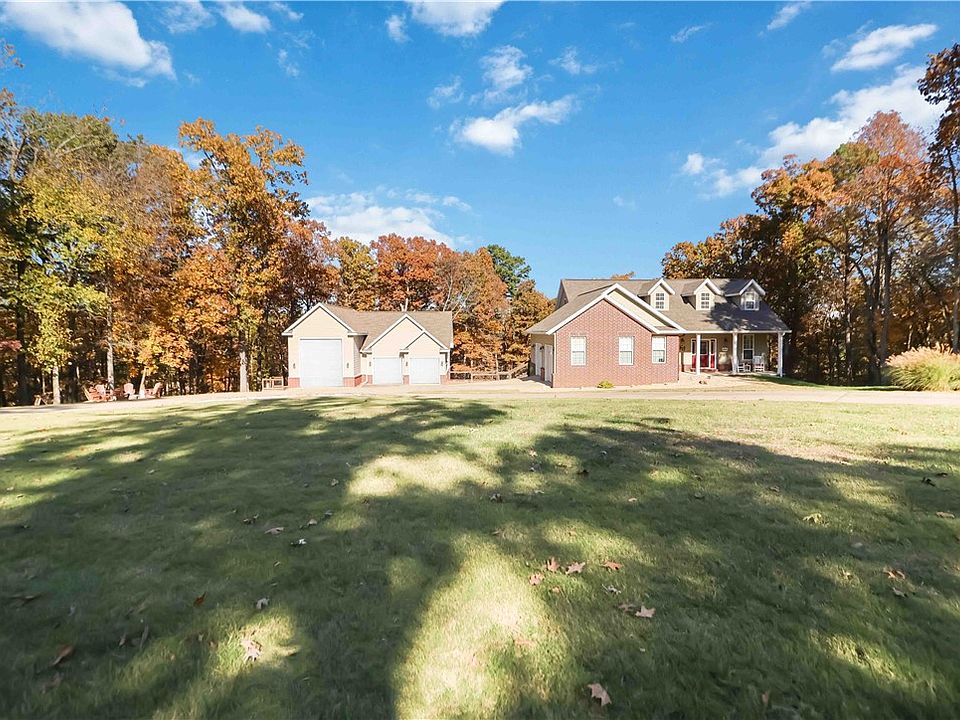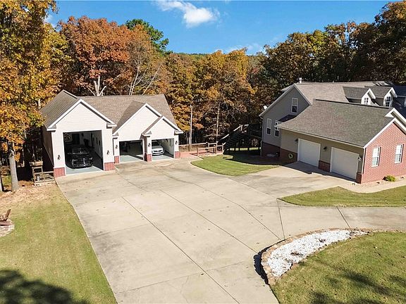 Discover exceptional value at this 4-bed, 3.5-bath estate on 5.15 serene, partially wooded acres in Point at Falls Hollow, minutes from Beaver Lake & downtown Rogers. Spacious 3,643 sq ft home with 2,125 sq ft 3-car garage (14' door, 16' ceiling—perfect for boat/RV or car lift). Three levels feature high ceilings, abundant light, and open flow between living, dining, and family areas. The kitchen boasts granite counters, stainless steel appliances, ample cabinetry, and a center island. Main-level primary suite offers dual closets (one cedar-lined) and a remodeled walk-in shower. Upper level: 2 beds + full bath. Finished walk-out lower level includes 4th bed, full bath, rec space with new carpet, bonus room, and storage. Includes 20kW whole-house generator, large deck, patio, circular drive, and mature landscaping. Ideal for privacy and entertaining.