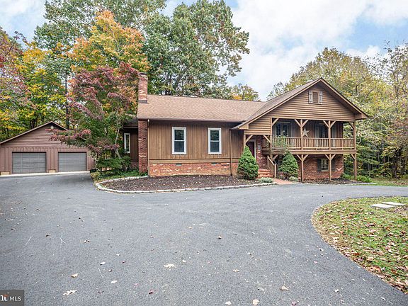 Custom, Country 4 BR, 3 BA Farmette on 14.5 acres is waiting for you in King George! Breezeline to highspeed broadband Internet (Cable modem). Wide Plank hardwood floors welcome you into the large living room with propane brick fireplace with expansive hearth that's flanked by built-in bookshelves. Hardwood floors throughout first floor except kitchen and utility room. Dining area has a bump out bay window. The kitchen has new SS appliances. There is also a utility room off the kitchen. Just a few steps up from the main level features 3 bedrooms and 2 baths. There are egress doors from both bedroom two and three to a small porch. Bedroom 3 has nice, built-in shelves. The lower level has a good-sized family room and a bedroom with a full bath. Each of these rooms have brand new carpet. The house has a geo-thermal system for heat and air (New in 2022). Whole House Generator for back up. Outdoors you'll find a circular paved driveway, Detached Two Car Garage with workshop, Greenhouse (Raspberry bush in front of the greenhouse and full fruiting strawberry bin in the greenhouse), Fenced Gardens, empty custom-built beehive (but it's set up for a new hive.) and Chicken Coop. The backyard is Fenced. It has a huge rear deck and a delightful outdoor area for entertaining that includes circular seating around a firepit, wooden playset and more! There is also a private walking trail cut into the property that's 3/4 mile long. In addition, you'll find two large fruiting peach trees in the center of the teardrop, circular driveway. The back garden has a 15' long patch of active blackberries and three full fruiting blueberry bushes. The side field has 4 fig trees and two walnut trees. There is an abundance of wildlife on the property which makes this your perfect place to escape, make your own homestead and enjoy nature at its finest!