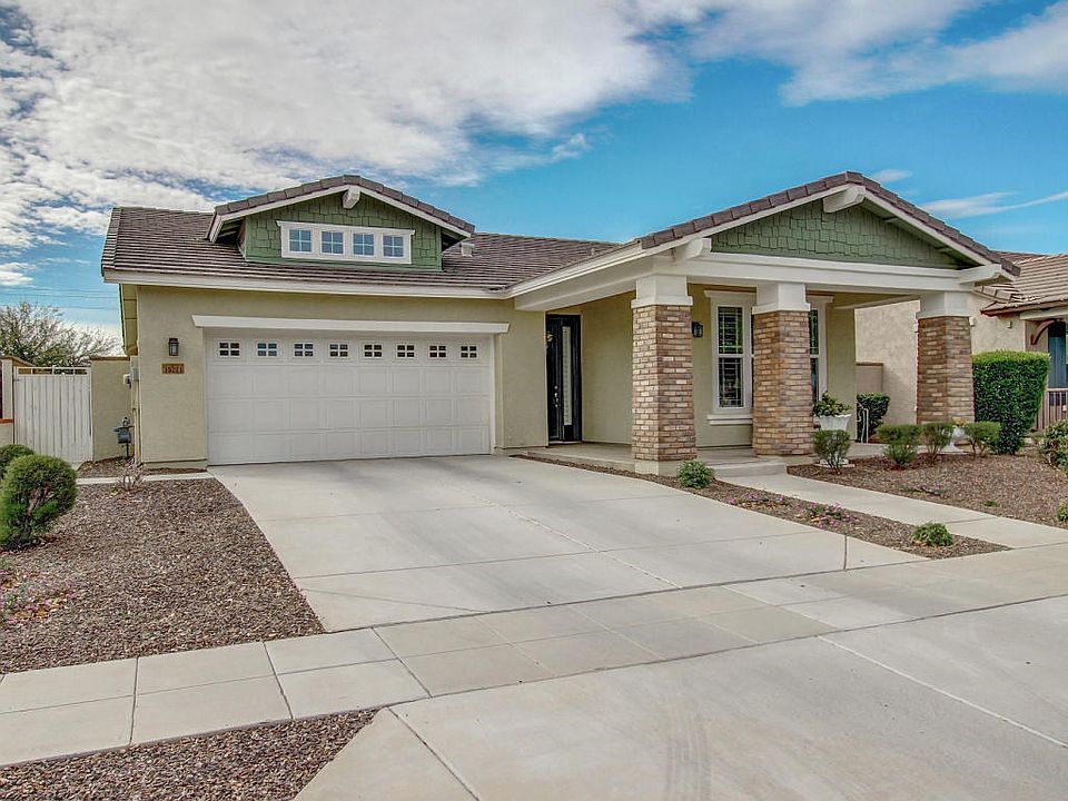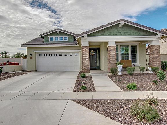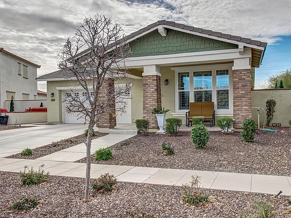 Located across from picturesque Storybook Park, this beautifully maintained craftsman style home in Marley Park features 2x6 construction, tile flooring in all living areas (blue carpet in family room is an area rug), & plantation shutters throughout. The spacious master suite has a large walk-in closet & a spa bathroom w/ double sinks & soaking tub w/ separate shower. The expansive open concept great room has a family room, dining area & kitchen complete w/ granite counters, a center island w/ breakfast bar, stainless steel appliances & large separate pantry. The covered patio (extended) allows plenty of room for relaxing & entertaining in the grassy backyard. Marley Park amenities include two community pools, a clubhouse, plus 18 neighborhood parks w/ play structures & splash pads.