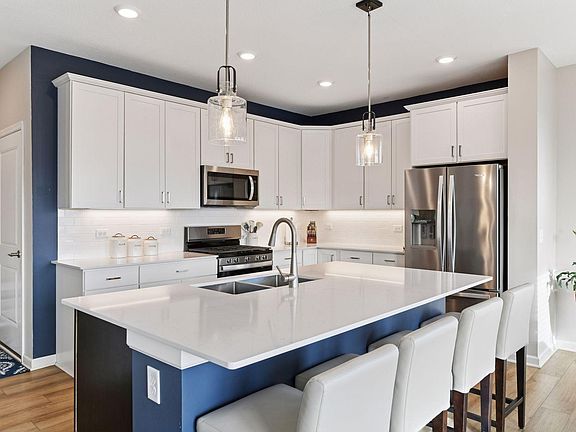 Welcome to Brayburn Trails, one of the area’s most sought after neighborhoods offering a perfect blend of luxury, nature, and community. Enjoy scenic walking trails, peaceful ponds, and access to a city park featuring basketball, volleyball, pickleball, and soccer fields, along with a playground and open green space. This home provides luxury living with peace of mind through an association that covers lawn care, irrigation, snow removal, and garbage service. Unlike current new construction, this home is upgraded with a concrete driveway and front porch, plus an extended garage bump-out providing exceptional storage or workshop space. Inside, you’ll find a gracious open-concept floor plan filled with natural light from the abundance of south-facing windows. The kitchen features a large center island with seating and storage, stainless steel appliances including gas range, and a spacious walk-in pantry. The living room offers a beautiful gas fireplace with a timeless tile surround and decorative mantel, creating a warm and inviting atmosphere. Upstairs are four generously sized bedrooms, including a luxurious primary suite with a spa-like bathroom featuring dual vanities, a soaking tub, a private water closet, a large linen cabinet, and a walk-in closet. The secondary bedrooms include step-in closets, with one impressively sized at 19' x 11'. Convenient bedroom level laundry room. The lower level is ready to be finished for an approx. 3,500 sf ft home ~ offering even more living space and flexibility to suit your needs.