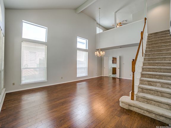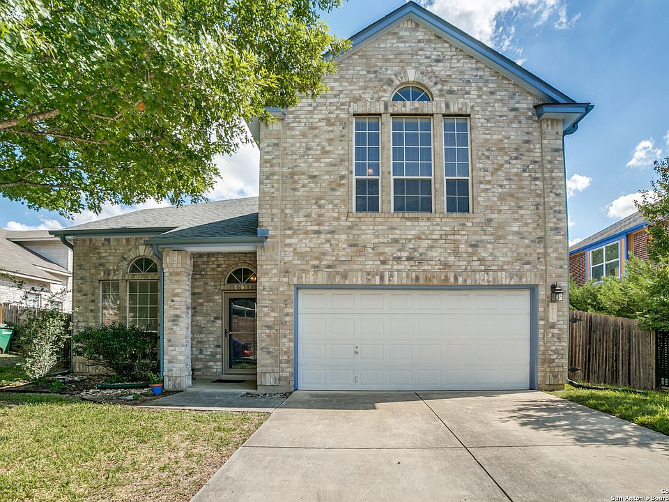 Great schools. Convenient to 1604, grocers, and more, schedule a tour to see this home today. This gorgeous, traditional-style home is clad in a brick exterior with accents of slate-blue trim. Inside, guests are greeted by fresh walls and wood flooring. The formal dining and living space showcases vaulted ceilings and surrounding picture windows. To the remaining common areas, the casual living area has a warm fireplace leading into the eat-in kitchen. The household chef will appreciate the ample cabinetry and prep space along with the florescent lighting and center island with storage. The primary suite offers a lovely en suite with dual sinks, a soaking tub, and a walk-in shower with natural light throughout the primary. Two secondary bedrooms are splendid for an office space or guest room. The bonus room can also be used for additional entertainment or could be used as a bedroom as it does have a closet. Outside, the coveted deck is perfect for enjoying a cup of coffee with views of mature shade trees. The lawn has been meticulously maintained for an oasis of its own.