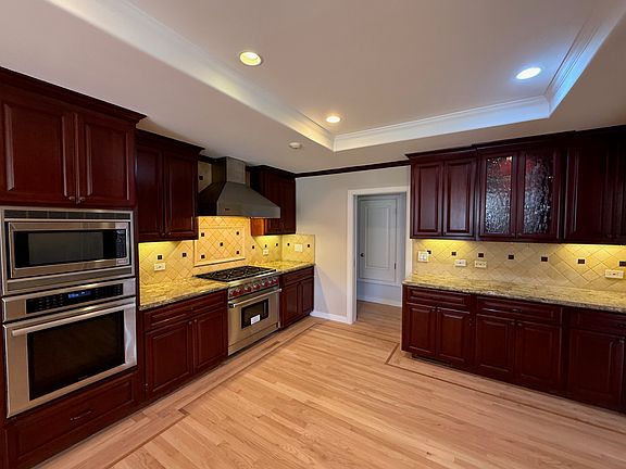 Step inside to discover newly refinished hardwood floors and fresh interior paint. The gourmet chef's kitchen is a culinary dream, featuring a Sub-Zero refrigerator, Wolf stove, walk-in pantry, and custom cabinetry. The formal living room boasts a wood-burning fireplace and opens to views of the sparkling pool, while the family room showcases a stylish coffered ceiling perfect for relaxed gatherings.