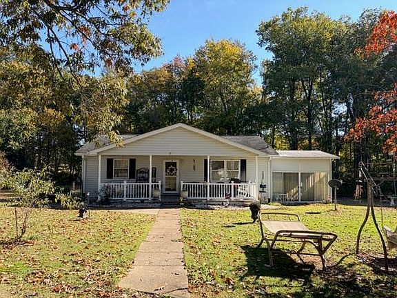 Peaceful and private describes this property perfectly! This 2-bedroom, 1 bath home is nestled on a beautiful 11.7 acres. Built in 1985, this one-owner home offers a sunroom with floor to ceiling windows, sprawling covered front porch and covered rear deck overlooking a 24' above ground pool (new in 2024). You'll fall in love with the almost 12 acres of land including a detached oversized 2 car garage, a 30'x40' carport, a 18'x16' carport and a storage shed. Entertain family and friends around the pool or enjoy a slower pace and watch the deer and turkey roam the fields. If a country retreat is what you're looking for, you will want to see this one!
