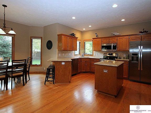 Exceptional ranch on corner cul-de-sac lot. Immaculate interior w/open great room 2 sided FP, 9ft ceilings, kitchen w/hardwood floors, dining area, granite counters, tile backsplash, SS appl & desk area. Spacious master w/trayed ceiling, w/i closet, full bath. Lg fin. LL w/2 separate living spaces plus office, non conf bed & 3/4 bath. Nice paver patio w/full wood fence. New paint, carpet, appliances and newer roof, drive, GDO's, furnace, AC & H2o. Close to Dodge Exp, Maple, Park & Schools!