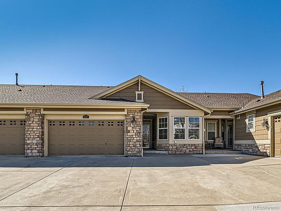 Beautifully updated townhouse nestled within the prestigious Heritage Todd Creek community Thoughtfully designed living space, combining modern amenities with the tranquility of golf course living. Key Features include: modern Kitchen, the heart of the home boasts granite countertops, new stainless steel appliances, and ample cabinetry, making it a chef's delight. Inviting Living Area includes an open-concept layout with pristine hardwood flooring creates a warm and welcoming ambiance, perfect for both relaxation and entertaining. Two well-appointed bedrooms provide comfort and privacy, with the primary suite featuring an en-suite bathroom for added convenience. Enjoy the Colorado sunshine on your private patio, ideal for morning coffee or evening gatherings. The versatile garage is more than just a place to park—it's a fully finished, climate-controlled retreat designed for relaxation and entertainment! The Epoxy-Coated Flooring is Durable, stylish, and easy to clean. Whether you're looking for the perfect man cave, she shed, or hobby space, this garage is ready to impress. As a resident of Heritage Todd Creek 55+ community, you'll have access to a clubhouse, fitness center, swimming pool, and the renowned golf course, enhancing your lifestyle with leisure and recreation options. Convenient Location situated in a serene neighborhood, yet close to shopping, dining, and major highways, this home offers the perfect balance of secluion and accessibility.