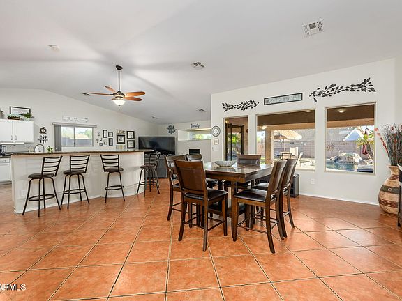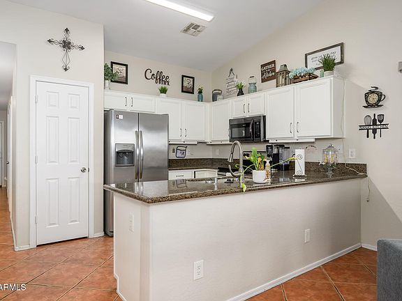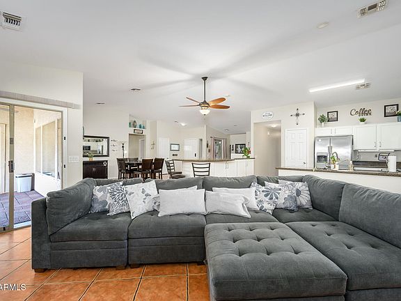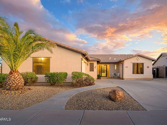 Perfect Move in Ready, 1 level, 4 bedroom home PLUS pool in Surprise!! Spacious great room with fireplace, vaulted ceilings open to a HUGE kitchen with island, stainless appliances plus dining room or office. Your master bedroom suite is split from the other 3 bedrooms and features vaulted ceilings, a dual sink vanity, separate tub and shower, a private toilet room and a huge walk-in closet. The resort-style rear yard is an entertainer's dream!!! Featuring a full rear patio with beautiful pavers, ceiling fans, a huge paved rear area for anything your heart desires PLUS a large side area and RV Gate (NO RV storage allowed). This wonderful corner lot is perfect for enjoying the beautiful AZ eves. HVAC 2025. Solar efficient! Seller offering 5K solar loan paydown or towards closing costs!