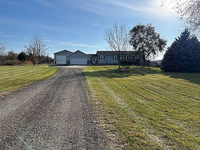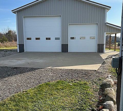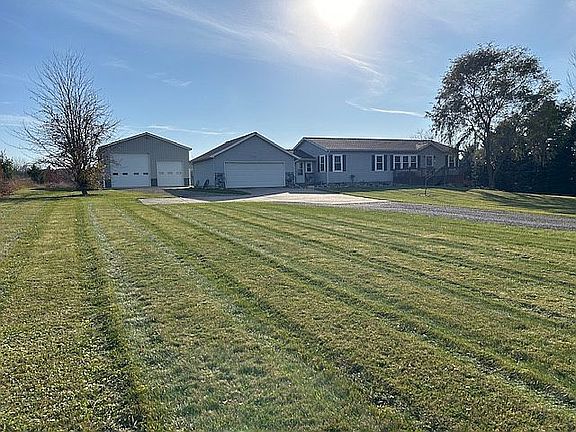 Very nice location with easy highway access and close to everything! Large 32x40 pole barn with floor drains and partially insulated. Walk out basement with downstairs 2nd kitchen!