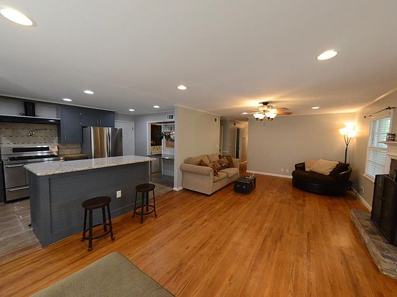Beautiful newly renovated home with relaxing private backyard. Backyard has a large shed and is surrounded by large privacy fence lined with shrubs and covered by healthy willow and oak trees. Central Heat and air work very well and were replaced within the last two years. Two car garage with workshop and cabinets as well as storage above garage as needed for larger items with enough room to stand up. Neighbors are very nice, quiet and always willing to lend a hand or say hello if they see you outside. Master bedroom has a new bathroom with standup shower while central bathroom has bathtub and plenty of storage. Inside is painted a very neutral color able to accommodate many style preferences and compliment the beautiful hardwood floors and concrete/granite countertops. Tenant pays for Utilities