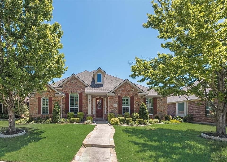 Discover a beautifully maintained one-owner home offering comfort, space, and style. With 4 bedrooms, 3.5 baths, and a 3-car garage, this thoughtfully designed residence is tucked into a quiet pocket of Allen near Stacy Ridge Park. Manicured landscaping, two mature trees, and great curb appeal welcome you in. Inside, you’ll find a spacious open layout with tall ceilings and gorgeous wood-look vinyl flooring throughout the main level. All bedrooms and 3 full baths are located on the first floor, smartly split for privacyideal for family or guests. The serene primary suite includes space for a cozy sitting nook and a spa-like bath. Upstairs, a large bonus room with a half bath offers the perfect spot for a media room, game space, fitness area, or private office. The heart of the home is the open kitchen, complete with Whirlpool appliances, double ovens, 4-burner flattop, and microwave-vent combo. Enjoy peaceful views of the lush backyard from the kitchen, family room, and sunny breakfast nook. Need a dedicated workspace? The front office with French doors offers quiet and flexibility. Step outside to a backyard retreat with a pergola, perfect for relaxing evenings or weekend gatherings. Enjoy direct access to trails, ponds, and the 14-acre Stacy Ridge Park. Plus, you're just minutes from great dining, shopping, and top-rated Allen ISD schools. Don’t miss your opportunity to own this spacious gem!