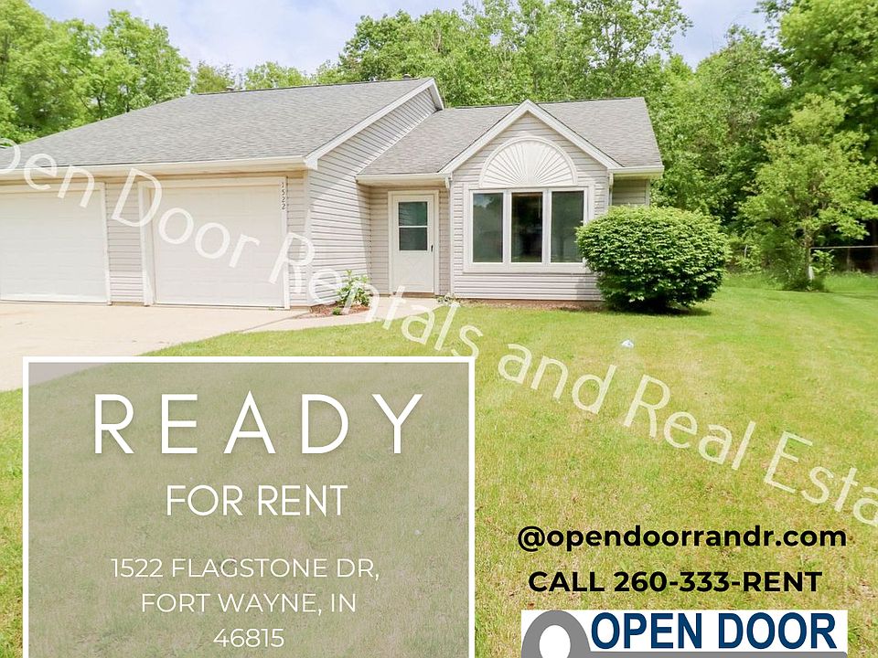 $200.00 off the first months rent! Welcome to 1522 Flagstone Dr in Fort Wayne, IN! This charming 2 bedroom, 1.5 bathroom house is perfect for those looking for a cozy and updated living space. The interior has been freshly painted and features new LVP flooring throughout. With vaulted ceilings and an eat-in kitchen with new stainless steel appliances, this house is both stylish and functional. Stay comfortable year-round with gas forced heat and central air. Enjoy outdoor living on the patio and take advantage of the convenience of a 1 car attached garage. This property is Obligo Approved and offers washer and dryer hookups. Non smoking/vaping and no animals allowed, ensuring a clean and peaceful living environment. Don't miss out on this fantastic opportunity to make this house your new home! Residents will also benefit from the Obligo Approved status for security deposit if qualified and a resident benefit package* *All Open Door Rentals and Real Estate residents are enrolled in the Resident Benefits Package (RBP) for $55.00/month which includes liability insurance, credit building to help boost the resident's credit score with timely rent payments, up to $1M Identity Theft Protection, HVAC air filter delivery (for applicable properties), move-in concierge service making utility connection and home service setup a breeze during your move-in, our best-in-class resident rewards program, on-demand pest control, and much more! More details upon application. Open Door Rentals is proud to offer deposit-free living to qualified renters through Obligo! We understand that moving costs can add up, so we want to extend financial flexibility to our residents. When you move in with us, you can skip paying a security deposit and keep the cash for activities you care about. Learn more about the benefits of deposit-free living with Obligo's brochure or an Open Door Team member.