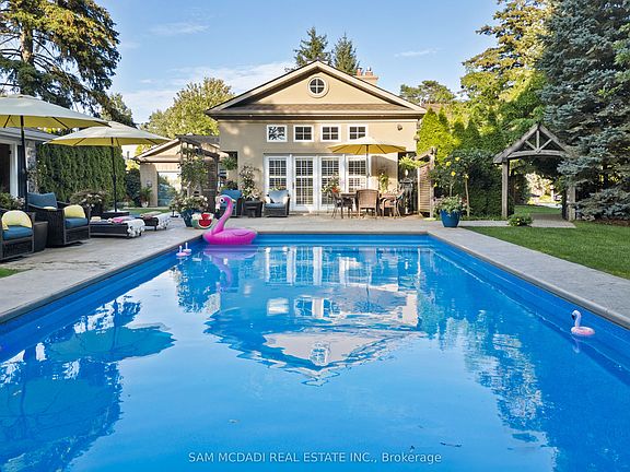 Discover the incredible potential of 1522 Glenhill Crescent, a beautiful raised-bungalow situated on an expansive 80 x 155 ft corner lot with no easements in prestigious Lorne Park. This move-in-ready home features over 2,400 sqft of bright, inviting living space across two levels, enhanced by continuous upgrades and an exceptional backyard oasis. Inside, the home showcases travertine stone flooring, maple cabinetry, and pot lights throughout. The great room impresses with 12-ft ceilings, floor-to-ceiling windows, a gas fireplace, and a walkout to the patio and pool. The spacious kitchen features stainless steel appliances, granite countertops, a breakfast bar, backsplash, and walkout to the deck. The primary suite features a walk-in closet and a 4-piece ensuite with a whirlpool tub and walk-in shower. The finished lower level extends the living space with two additional bedrooms, a full bath, a family room with gas fireplace, a custom wine cellar, a home office, and a dedicated laundry area. An oversized heated two-car garage with epoxy floors, built-in shelving and a workstation enhances the home's functionality. Outside a resort-style backyard awaits with a 16' x 32' heated saltwater pool, lush gardens, and mature evergreens that provide both beauty and privacy. Outdoor amenities are endless - relax poolside on the expansive stone patio, unwind in the roof-covered hot tub, enjoy the Muskoka-inspired cabana with a finished change room, or dine under the pergola on the raised deck. A tranquil waterfall and vibrant landscaping complete this one-of-a-kind entertaining and relaxation oasis. This rare property offers an exceptional opportunity for expansion or a future custom build. Located just minutes from Lake Ontario, Jack Darling Park, top-rated schools, and the vibrant Port Credit and Clarkson Village communities, this property offers a unique blend of immediate comfort and long-term investment potential in one of Mississauga's most sought-after neighbourhoods.