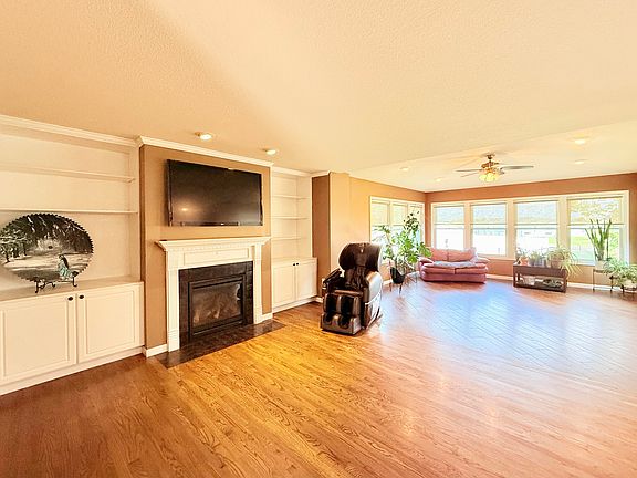 Elegant 2 story with brick and stone exterior features beautiful main floor great room with hardwood floors, gas fireplace, granite countertops, island, pantry and walk-out to large patio and fenced backyard. The large dining room is perfect for entertaining. Three bedrooms include primary suite with large walk-in closet and water closet for privacy; and large bedroom with lovely window seat. Laundry room is nestled in near bedrooms for convenience and has cabinets for storage. Very cute office nook provides plenty of space to work from home or to study. Large lower level family room hosts the 2nd fireplace. Backyard has an 8 x 5 underground shelter.