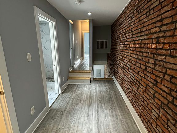 Modern bathroomsIn-unit washer and dryerOpen concept layoutExposed brick accent wallMarble tile finishesVinyl plank flooringCentral air and heating