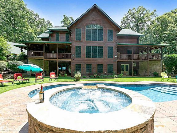 No need to vacation when Paradise awaits right here in this luxurious, custom built home with wrap around front porch and views to die for in all directions. This home is nestled on 10 acres of mature, wooded land and located far enough back on the property that you feel like you're in a mountain setting. The interior of the home is filled with character and charm. Hardwood floors throughout are Heart of Pine, walls and ceilings created from elegant wood with dynamic features. 2 story family room with a loft and stately fireplace w/mantle handcrafted with wood from the property. Basement has a large open staircase and finished with the same elegant detail as the rest of the home. The spacious kitchen has granite counters, double ovens and a flat surface cooktop. Master suite is oversized and master ensuite fully remodeled w/ clawfoot freestanding tub, dynamic shower, double vanities. All of this topped off with a brand new saltwater pool. Just waiting for you to call home!!