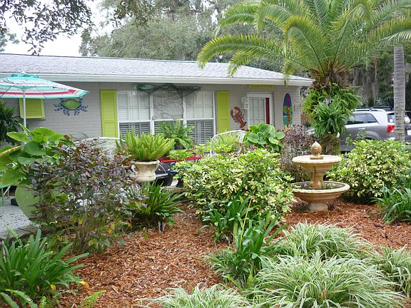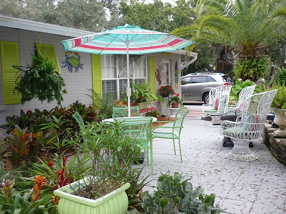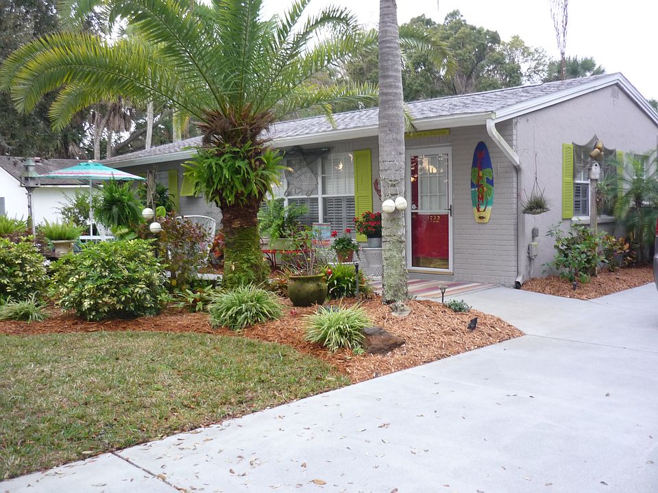 Riverside Drive Charmer! Enjoy a piece of paradise in your own back yard with your private inground pool, hot tub, and gazebo while living carefree in this desirable neighborhood. The backyard is your own tropically landscaped getaway or relax by strolling the "river walk" along the Intracoastal. This home offers 3 bedrooms, 2 bathrooms, a remodeled bonus room that could be used for dining, den, or office and the kitchen has newer stainless steel appliances. The living area also has plantation shutters for privacy and the home has chestnut wood laminate, tile, or stained concrete floors throughout--no carpet at all. The HVAC system was installed in approx. 2014 and a new roof as of 2016. The house is move in ready and boasts an island décor that makes you feel like you're on "island time" . The lush landscaping allows for privacy and also makes the yard low maintenance--more time to enjoy all that this inviting home has to offer. The 3rd bedroom could also serve as a private master suite or in law suite with it's own private bath and entrance if desired. The open beamed ceiling and stained concrete floors make this an absolutely charming retreat. A centrally located property, you are close to 3 boat ramps/parks, minutes to shopping/dining/schools, etc, and just a short drive to put your toes in the sand on the beach. This is a must see home to fully appreciate the attention to detail that has been put into making this home truly a paradise found!