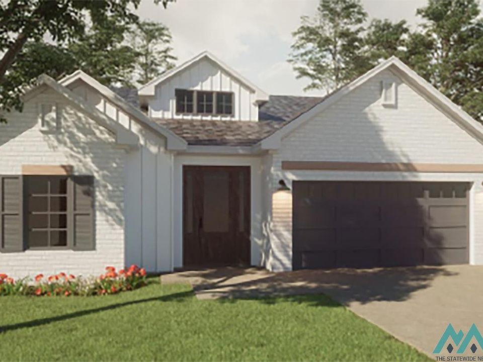 One of Stuard Homes' best selling plans! This Farmhouse Design Amethyst Plan has exterior farmhouse features on front of home, vaulted ceiling in living area and kitchen, pine wood front door, 8' interior doors, upgraded tile throughout all wet areas, hallways, and living area, water softener rough-in, jetted tub in master, and blinds throughout the home.